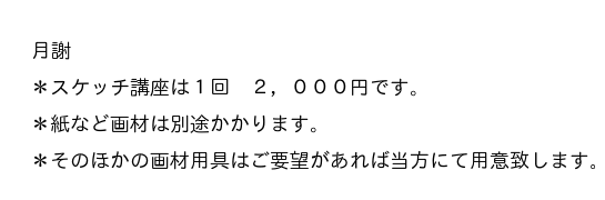 - 初めて絵をかかれる方を対象に、気軽に楽しみながら水彩絵の具や鉛筆などで簡単なスケッツチ画を描くクラスです。