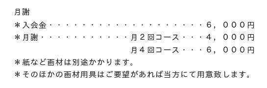 - ○上記以外の画材、鉛筆、水彩など様々な描法を選べます。